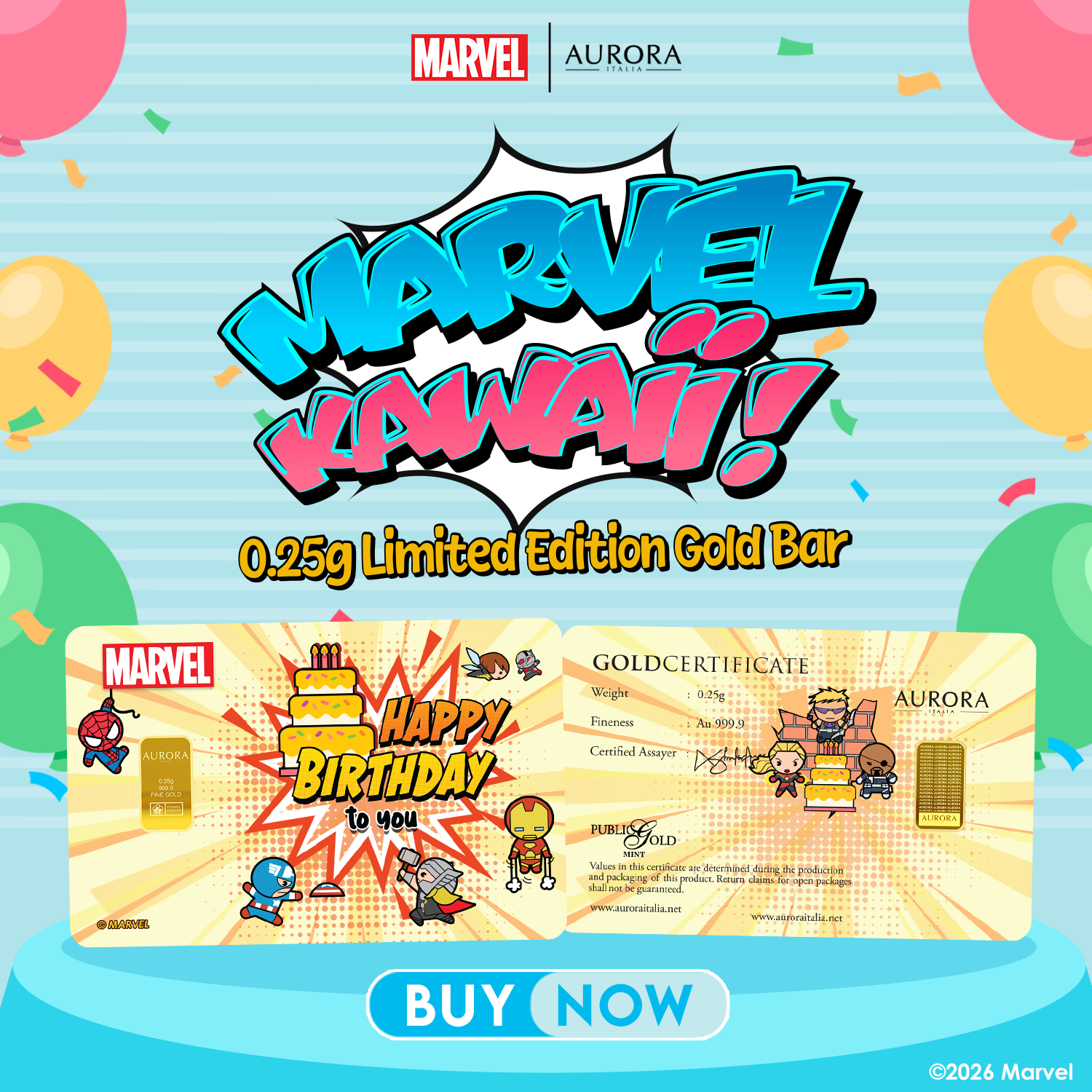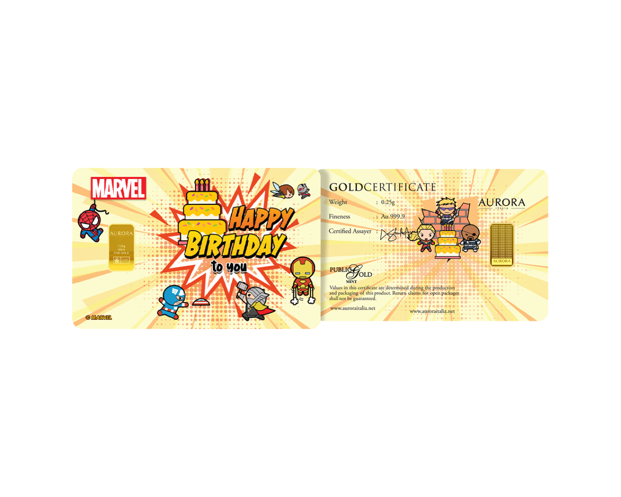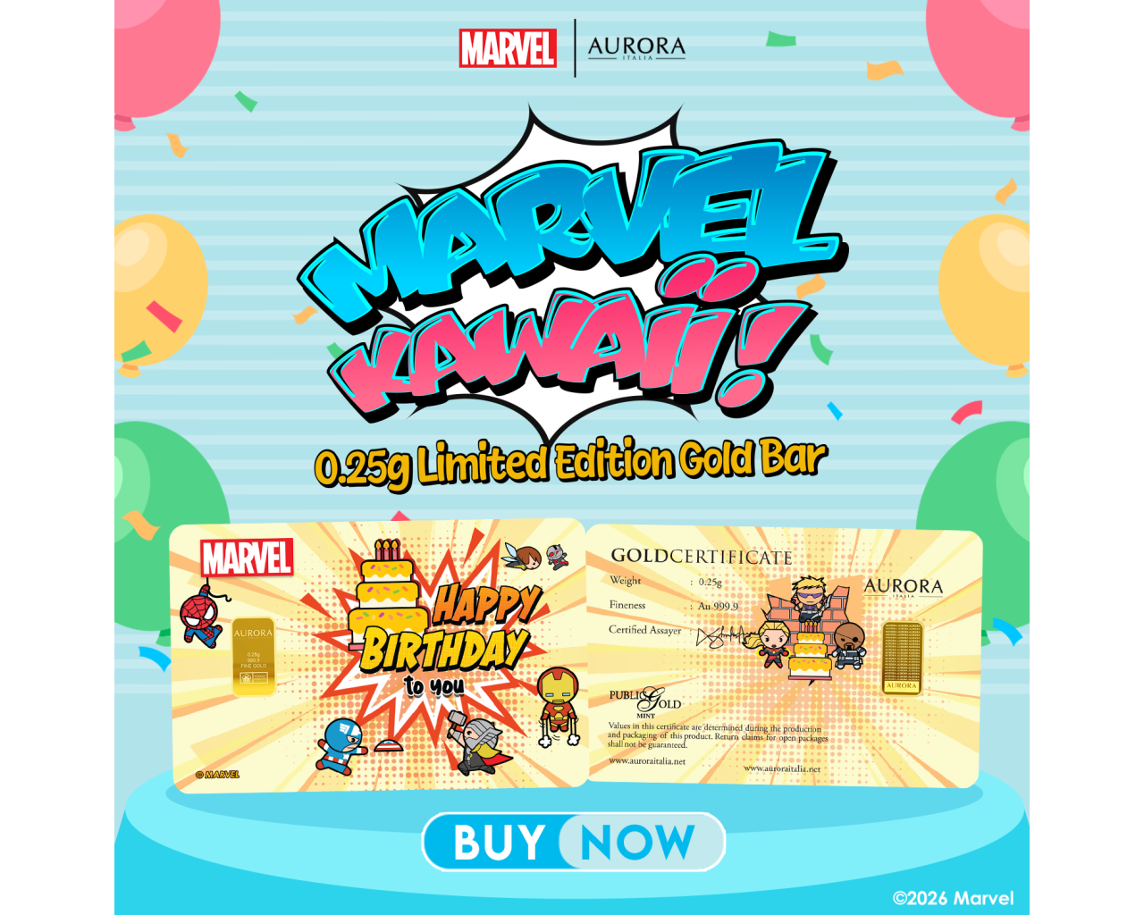 [NEW LAUNCH] MARVEL x AURORA ITALIA (0.25g) 999.9 Marvel Kawaii Birthday Limited Edition Gold Bar
