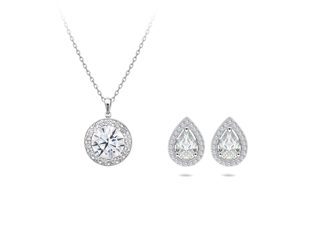 Auroses Halo Pendant + Auroses Pear Halo Earrings